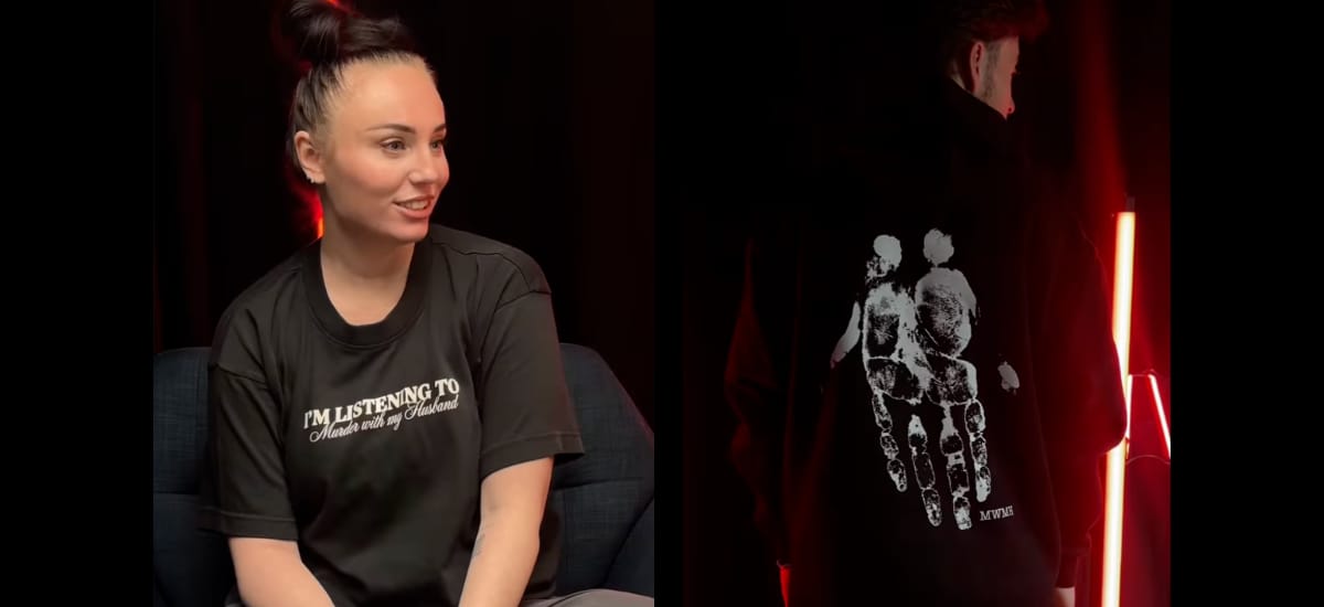 Show your love for MWMH with our new merchandise! We’ve got t-shirts and hoodies that feature the text I’m Listening to Murder With My Husband on the front, and a unique fingerprint design on the back. Shop them now in our online store!